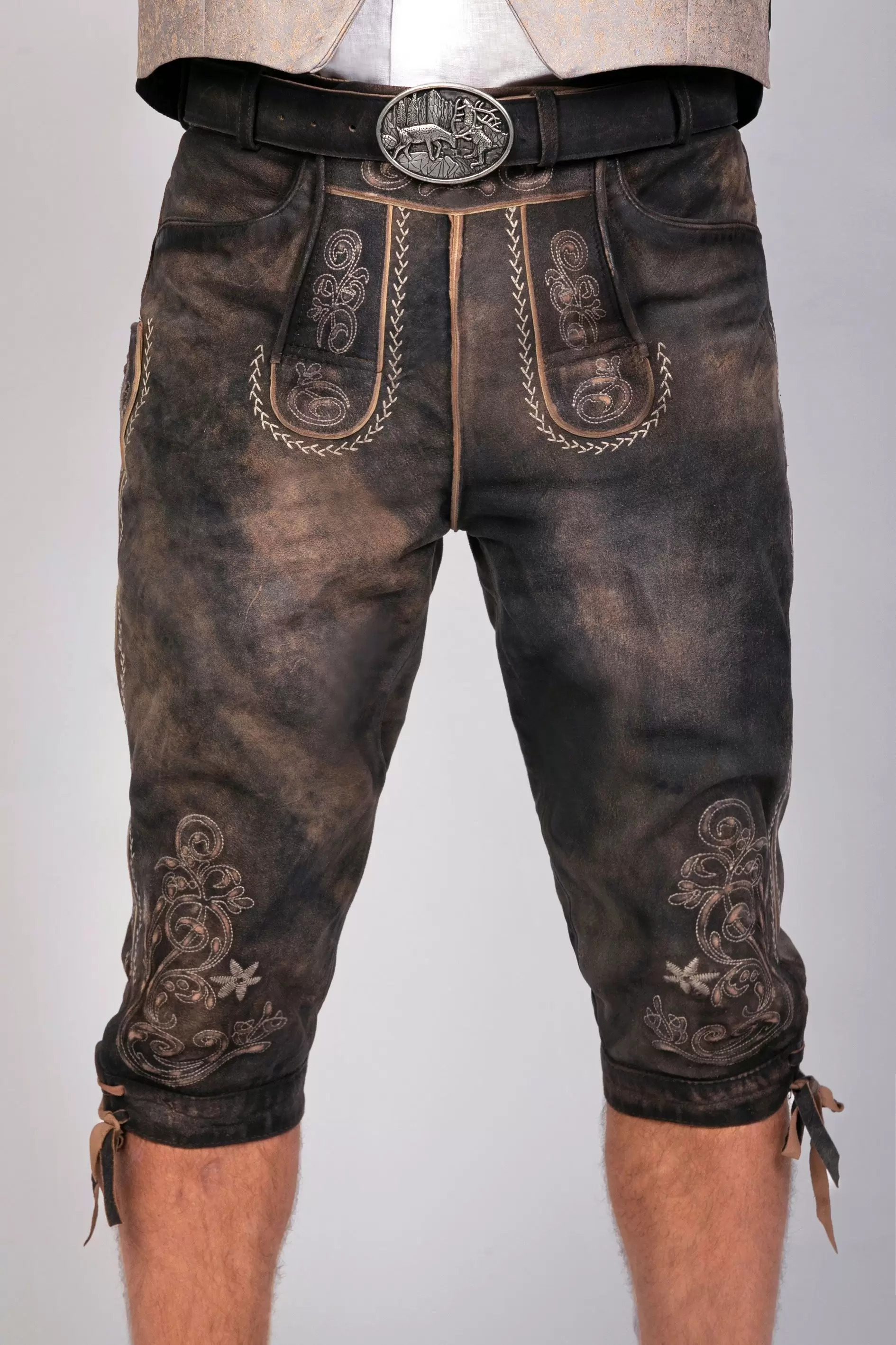 Traditional leather breeches, knee-length breeches, deer dark brown