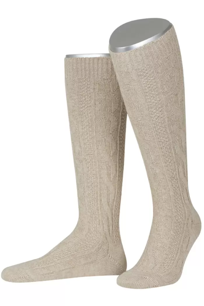 Long traditional socks with cable knit pattern