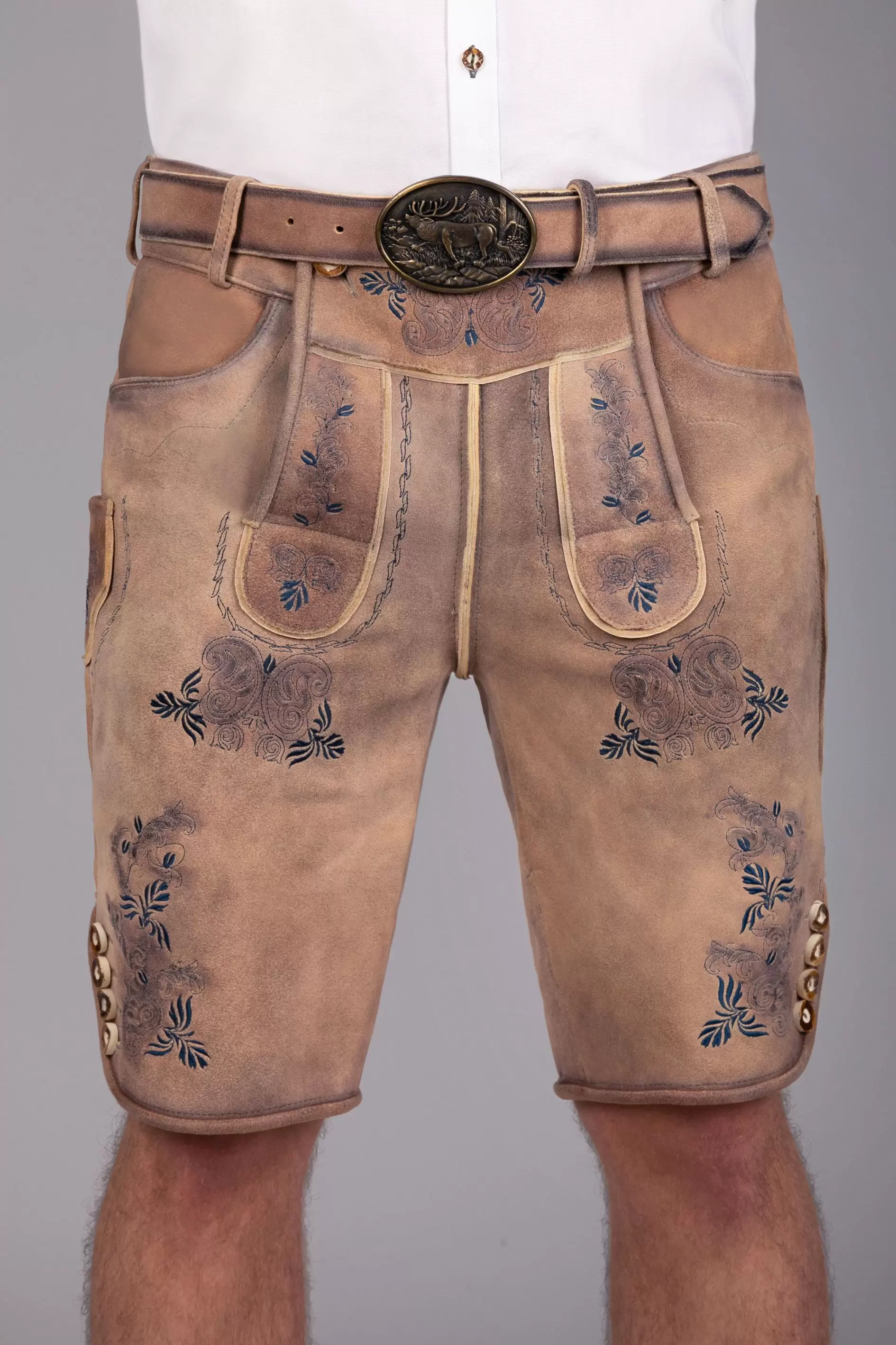 Short Wildbock leather trousers Peter blue chamois