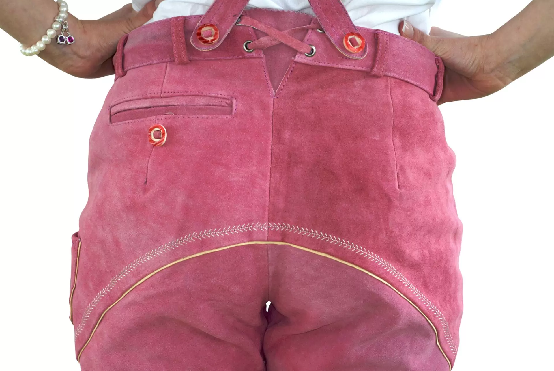 Women's traditional lederhosen knee breeches pink