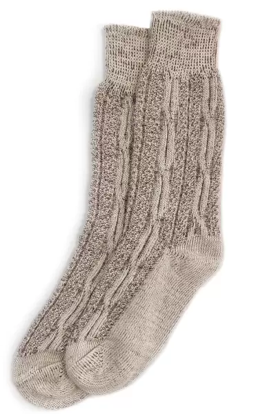short traditional socks with cable knit pattern, brown melange