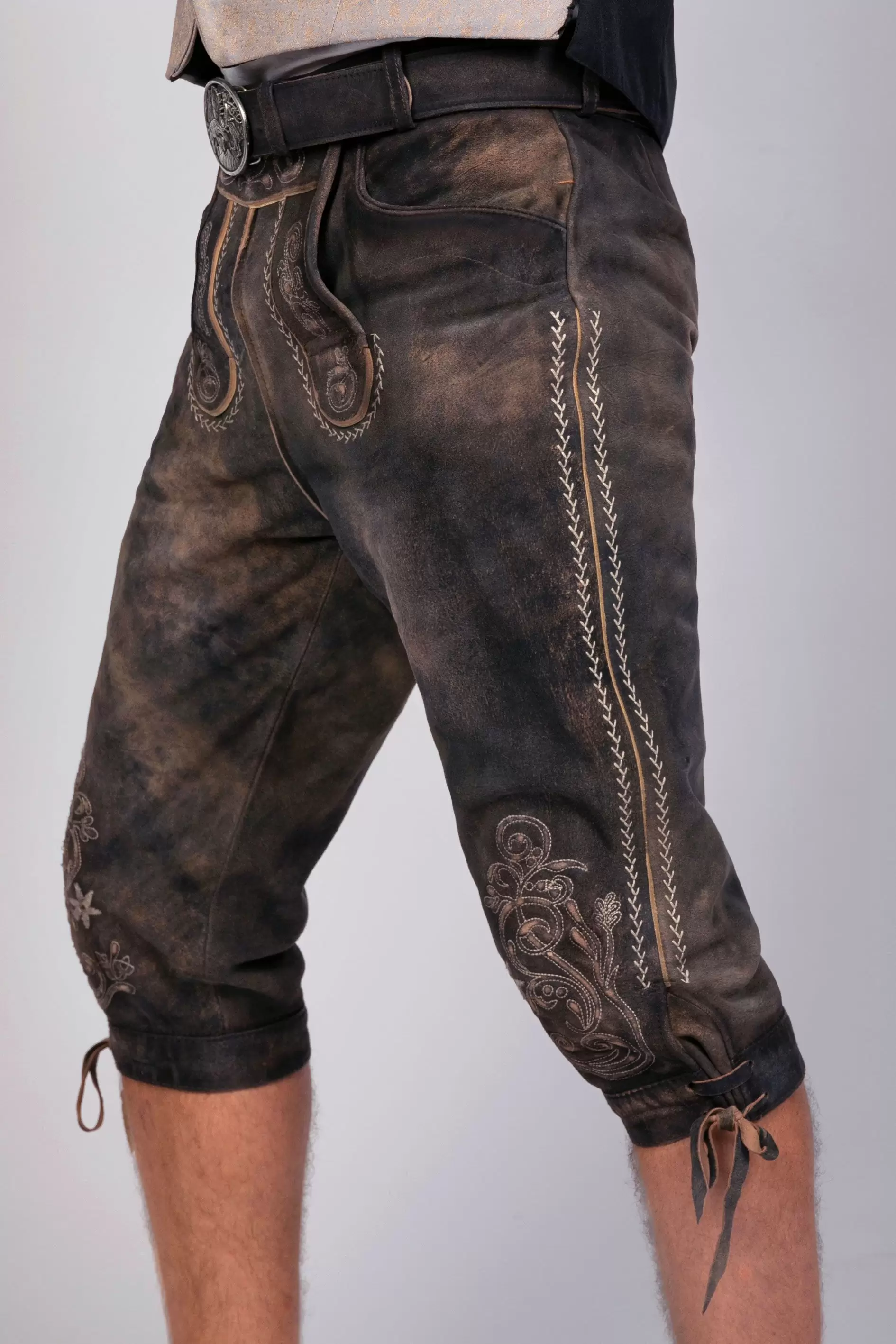 Traditional leather breeches, knee-length breeches, deer dark brown