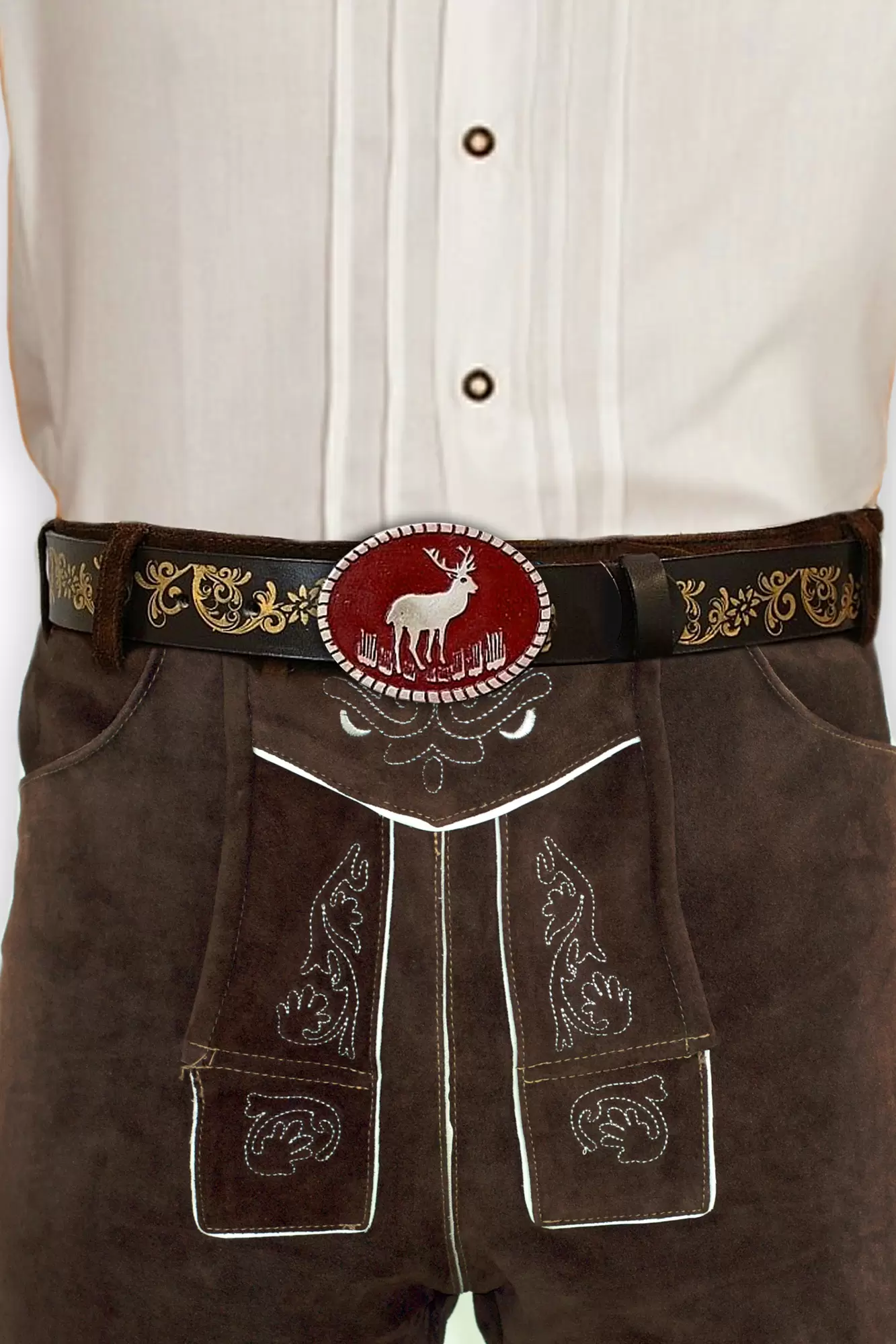 ornate traditional belt, deer design