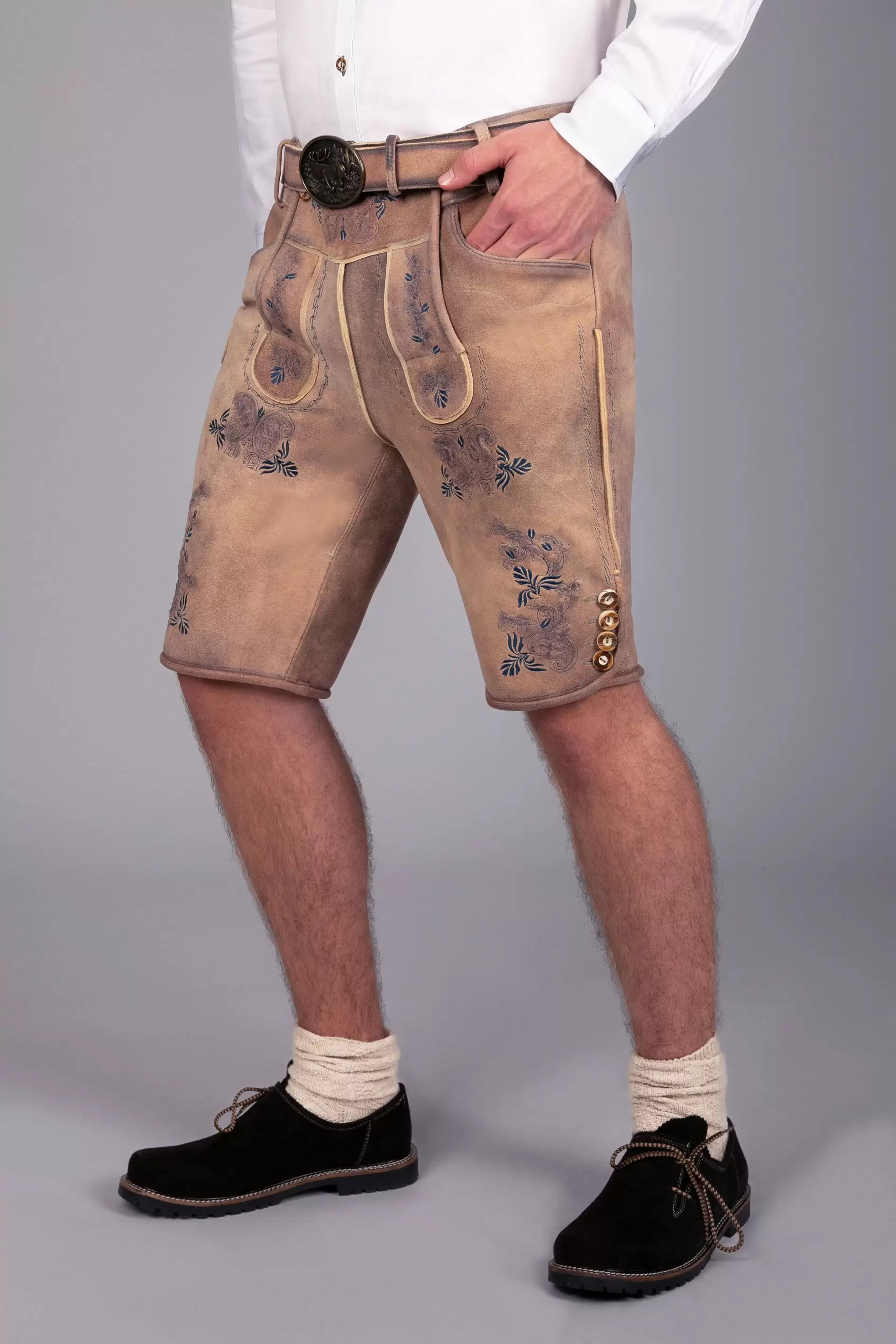 Short Wildbock leather trousers Peter blue chamois
