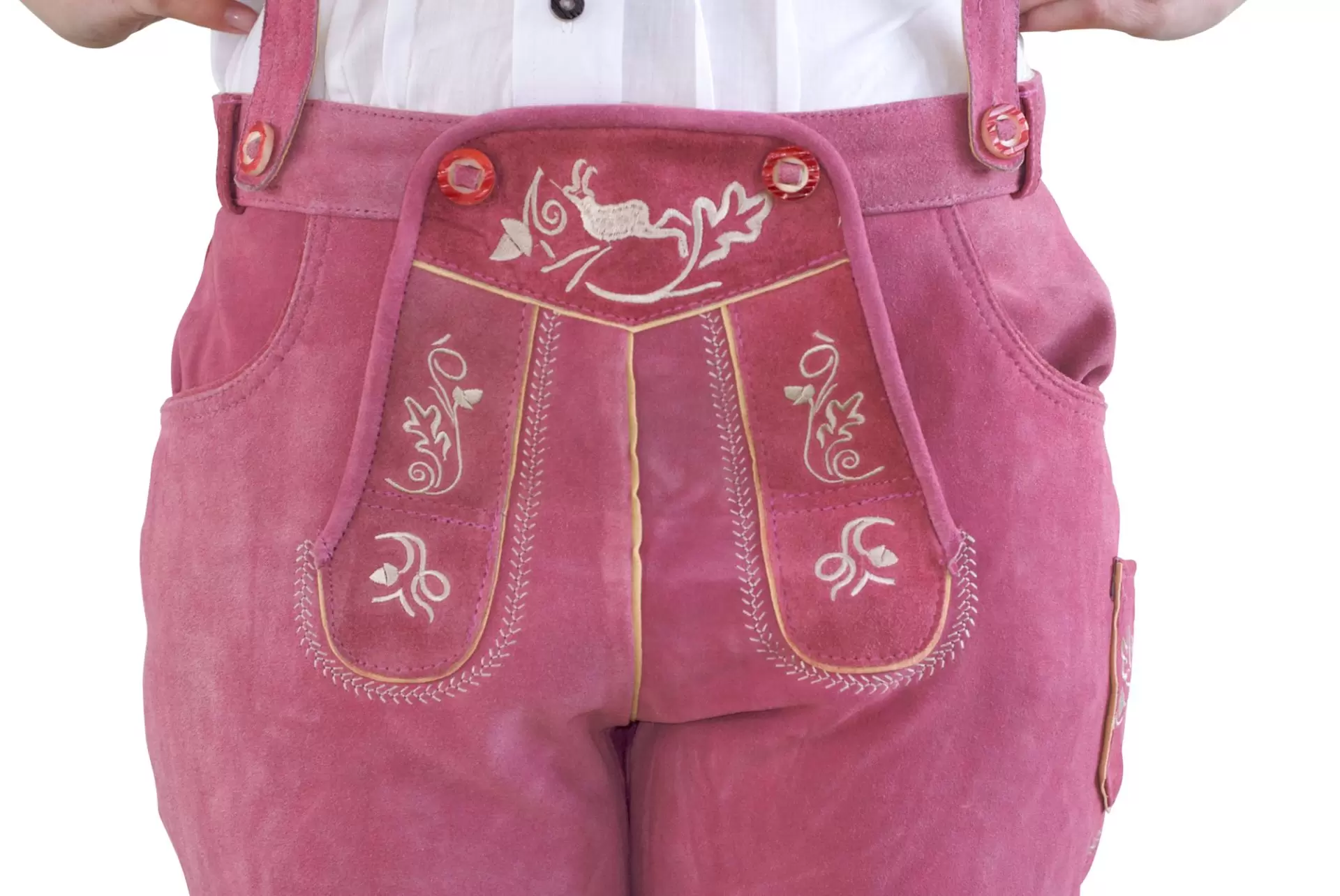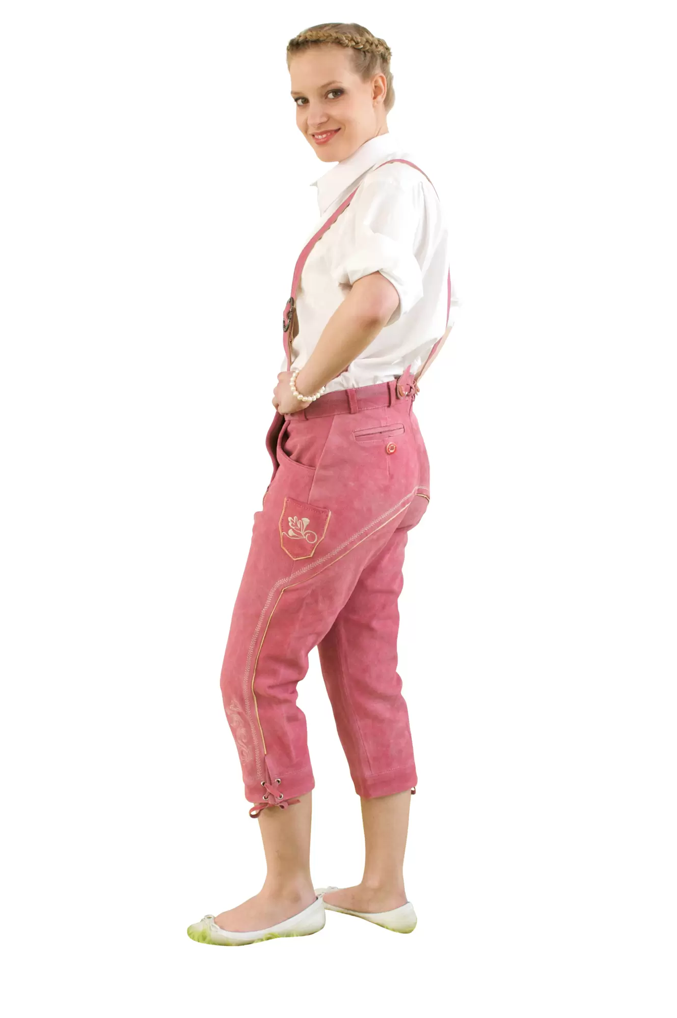 Women's traditional lederhosen knee breeches pink